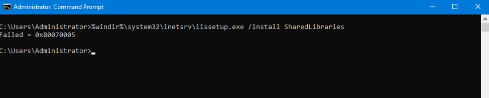 %windir%\system32\inetsrv\iissetup.exe /install SharedLibraries